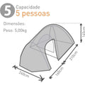 Seu interior é confeccionado em Poliéster 190T de alta qualidade, a tela em tecido mesh previne a entrada de mosquitos ou insetos durante seu acampamento, conta ainda com piso de polietileno de alta densidade e anti-fungo.