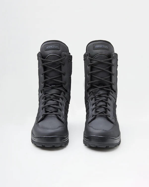 A Bota Tática Interceptor da Invictus é voltada para uso operacional e ambientes exigentes, combinando durabilidade, resistência e design funcional. Conta com cabedal em tecido CORDURA®500 de alta resistência + camurça (em determinadas versões), solado tecnológico com sistema “fast rope” para descidas com corda, zíper lateral para calce rápido e reforços estruturais para proporcionar suporte e estabilidade ao tornozelo. Segundo a marca, ela é “ultraleve” para o segmento, com peso aproximado de 1.280 g por par (tamanho 40).