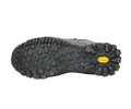 O solado é fabricado com tecnologia Vibram bi-componente de borracha + entressola em EVA, oferecendo boa aderência e amortecimento.
