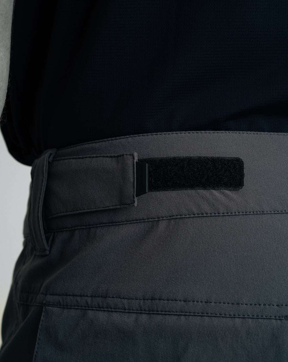- Fechamento do cós com zíper e botão de pressão