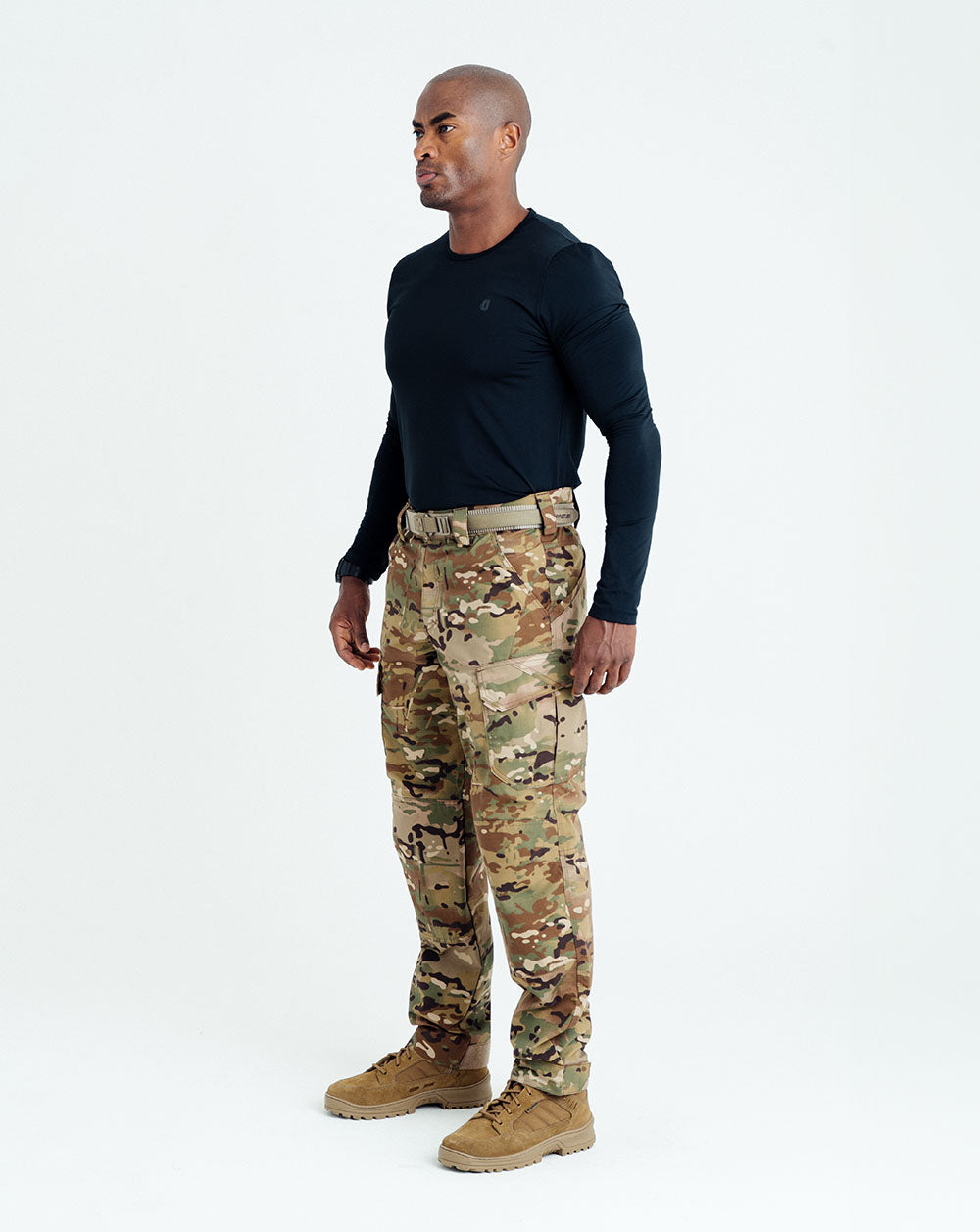 - Bolsos laterais deslocados para cima e levemente inclinados para facilitar o acesso, mesmo com de arma empunhada.