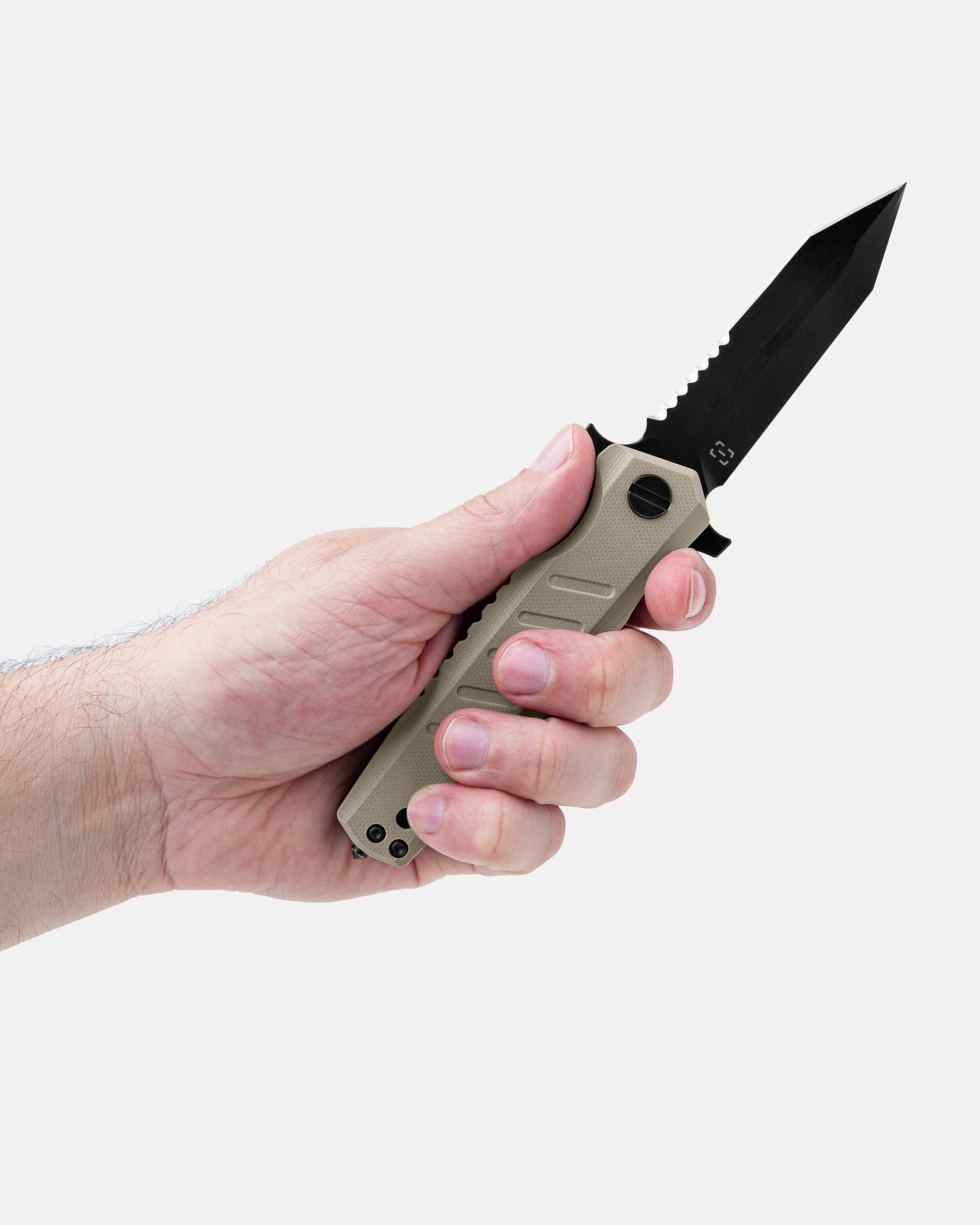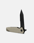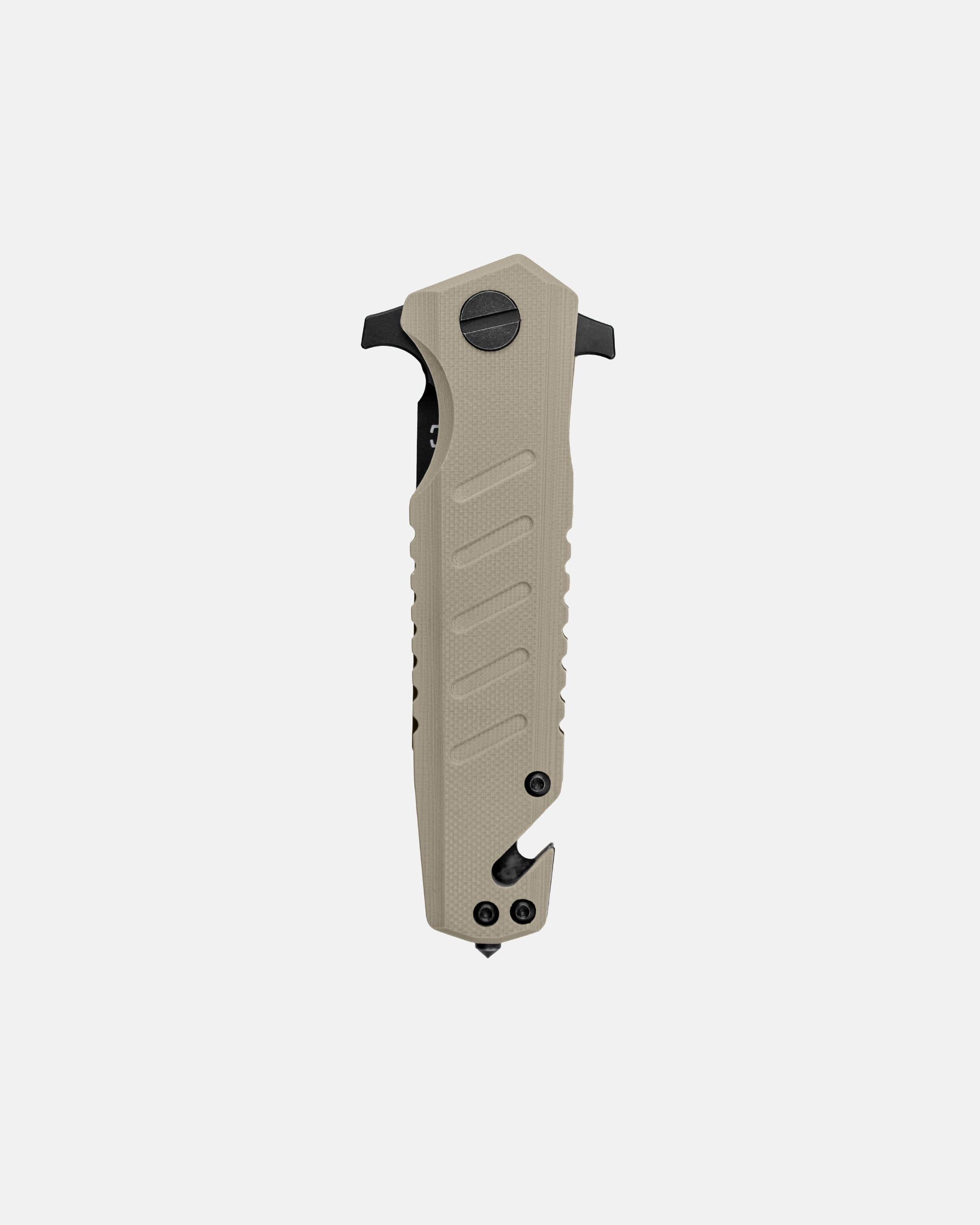 Equipado com recursos adicionais, o VENATOR conta com quebra-vidro na extremidade do cabo e corta-cinto integrado, tornando-se um verdadeiro aliado em emergências. O sistema de abertura por rolamento Ball Bearing proporciona acionamento rápido e suave, enquanto a trava Liner Lock assegura firmeza e segurança durante o uso. O cabo em fibra de vidro G10 texturizado na cor coyote garante leveza, aderência e controle superiores, mesmo em condições adversas.
