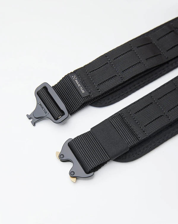 O Cinto Rigger Extreme INVICTUS- Preto trata-se de um acessório de guarnição primordial para o desempenho do operador. Confeccionado em fita de poliéster de alta tenacidade, possui fivela de engate rápido tipo Fasten e sistema MOLLE Laser Cut. Além de ajuste de cintura em tecido aderente, ele vem com 6,5 cm de largura, sua utilização é ostensiva, para ancoragem de coldres e acessórios modulares. Tudo para oferecer mais segurança e conforto ao operador.