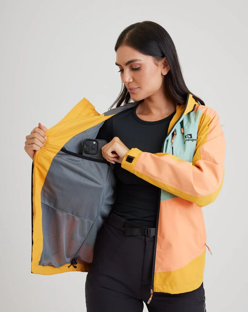 JAQUETA IMPERMEÁVEL GALAPAGOS DARWIN EVOLUTION 2.0 FEM AZUL TURQUEZA, SALMÃO E AMARELO P