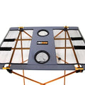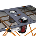 Pensando em deixar essa mesa ainda melhor, ela ainda possui dois espaços específicos para latas e copos, permitindo que você aprecie uma boa bebida em sua aventura.