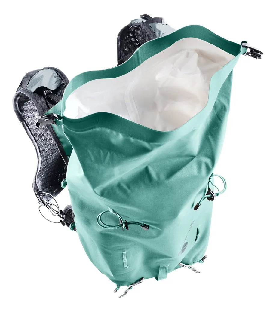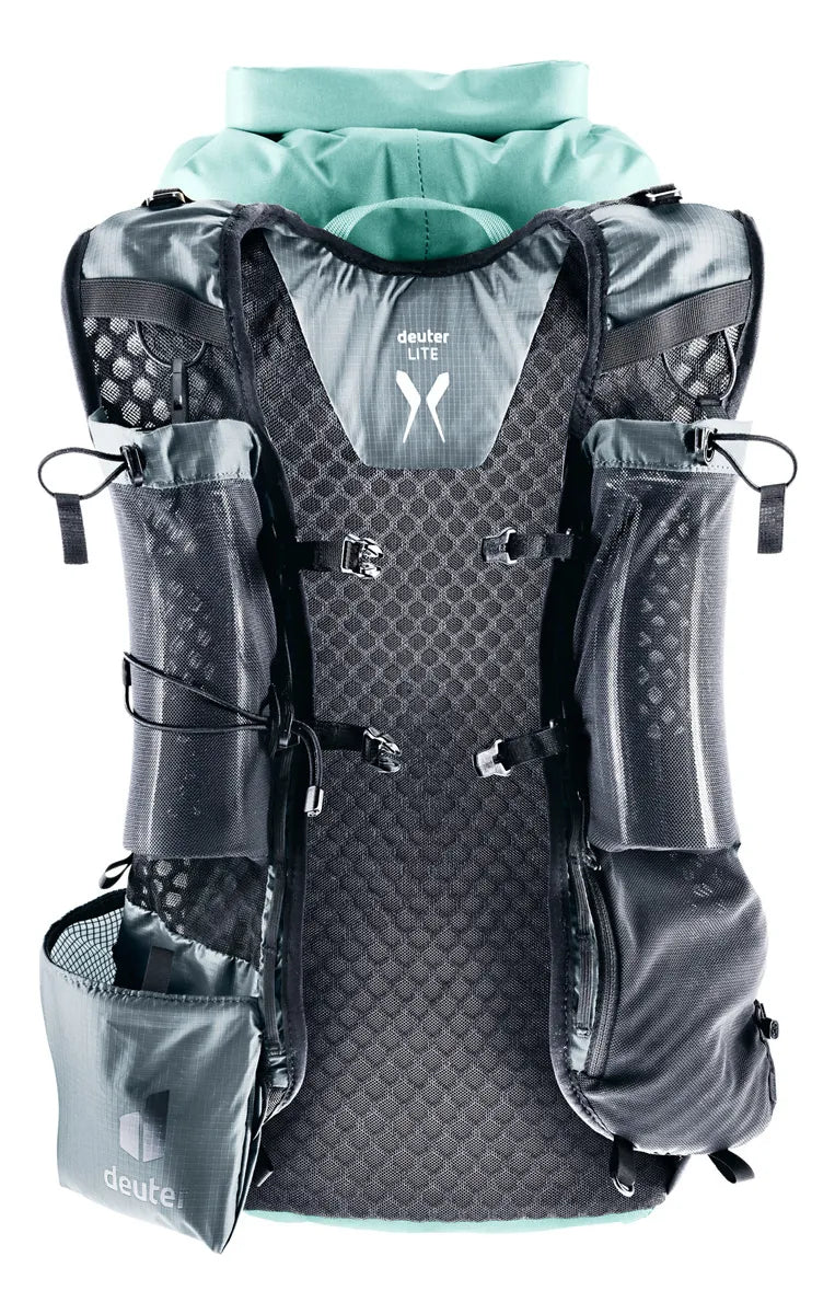 A Mochila Deuter Vertrail 16 L (Azul) é uma opção ultraleve e resistente para atividades outdoor como hiking, trail running ou escalada. Com apenas 480 g, ela utiliza material 220D TPU, costuras seladas e zíperes protegidos para garantir proteção contra respingos e leve resistência à umidade.