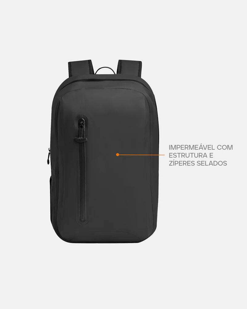 - O zíper com vedação impermeável oferece proteção contra respingos de água de todos os lados, mas não é submersível. Lembre-se sempre de fechá-lo completamente até travar.