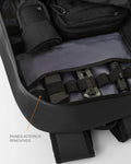 - Painéis EDC destacáveis: conta com dois painéis destacáveis projetados para organização de itens EDC (Everyday Carry), permitindo que o usuário personalize o espaço interno.