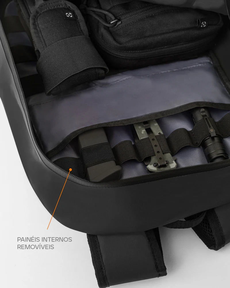 Projetada para atender ao estilo Gray Man, aquele que não chama atenção, mas está sempre pronto. Com 24L de capacidade, ela traz painéis internos removíveis para oferecer versatilidade na organização do seu EDC. Conta com bolso externo para objetos essenciais, compartimento lateral para garrafa e painel traseiro que proporciona ventilação constante e conforto.