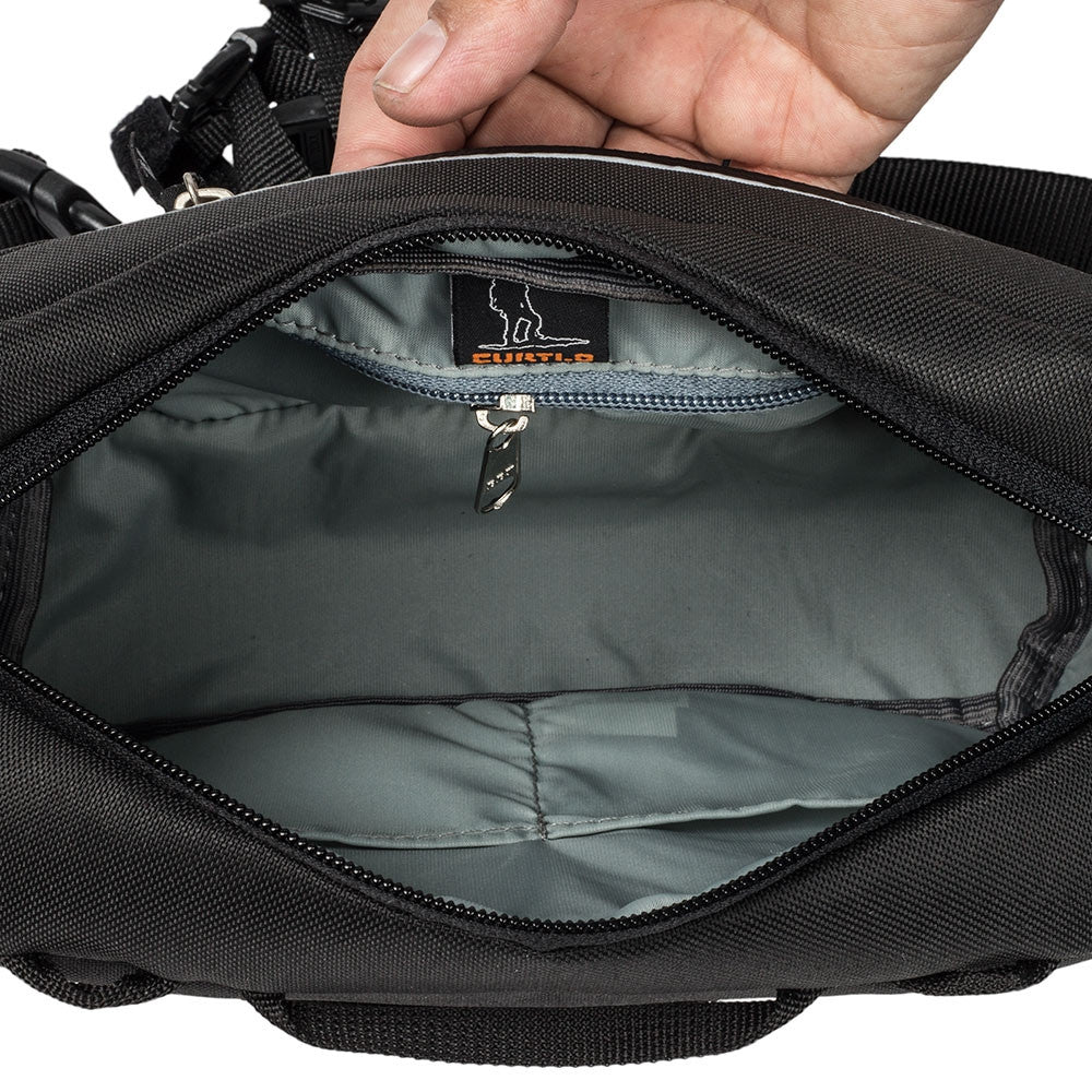 A Pochete Curtlo Escaper é a escolha ideal para quem precisa carregar o essencial com máximo conforto. Fabricada em Velox 250D (Nylon Ripstop), ela é extremamente resistente a rasgos e repelente à água. Seu design conta com um compartimento principal acolchoado e um bolso frontal elástico de fácil acesso.