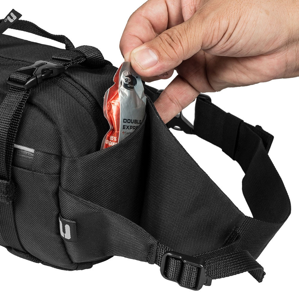O grande diferencial é o seu perfil anatômico com costuras reforçadas e o costado em Dry System®, que auxilia na evaporação do suor e reduz o calor no contato com o corpo. Além disso, possui fitas de compressão que estabilizam a carga e evitam que a pochete fique "pulando" durante a corrida ou o pedal.