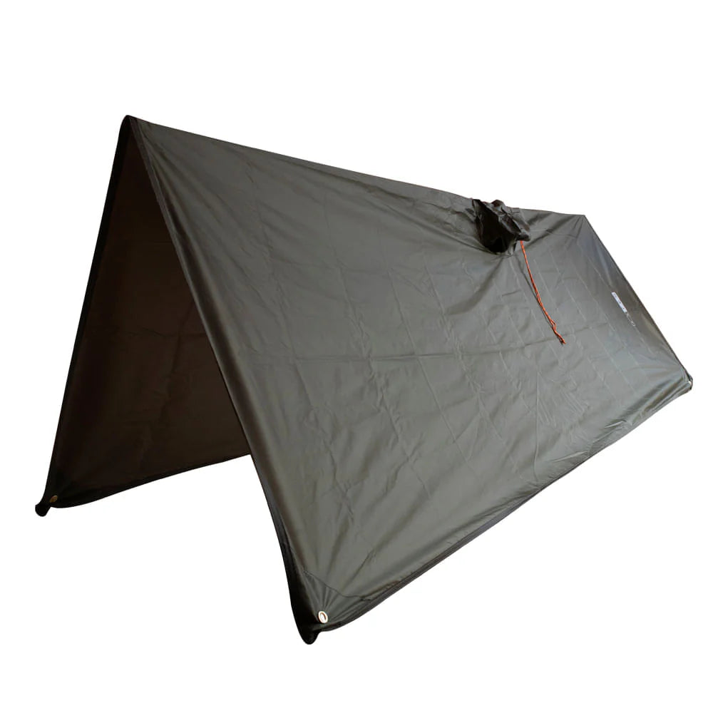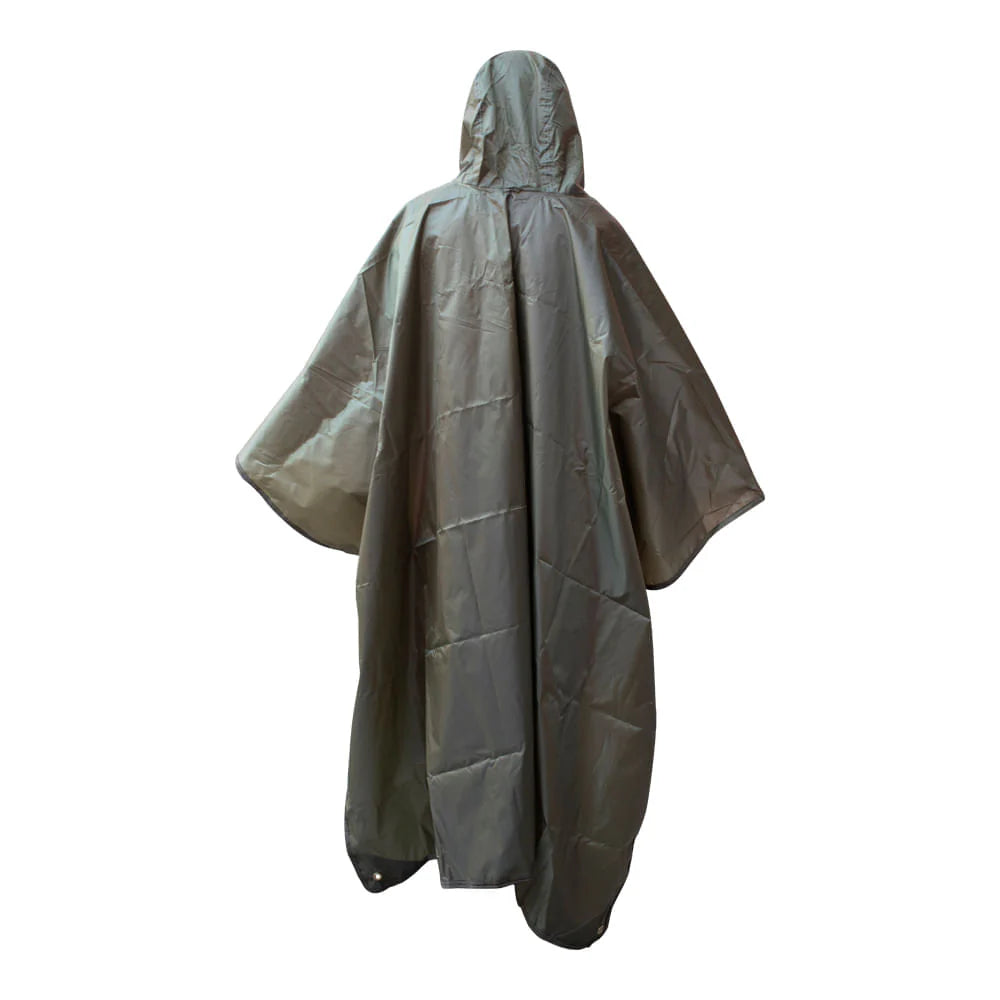 Seu design é inteligente: possui botões de pressão laterais que permitem o fechamento como capa ou a abertura total para uso como abrigo. Além disso, conta com ilhoses nas extremidades, facilitando a fixação com estacas ou cordas (paracord) para montar um bivaque rápido. A cor Verde Militar é ideal para quem busca discrição e camuflagem em ambientes de mata.