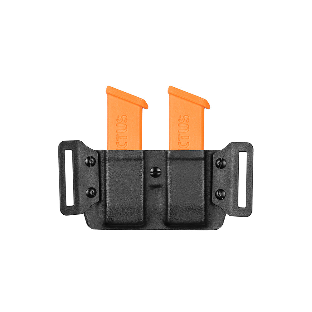 É um porta-carregador externo duplo para plataforma TAURUS®. Seu passador de cinto é em Polímero - com passagem de cinto de até 52 mm. Com ajuste de retenção, acopla 2 carregadores de pistola TAURUS®, é impermeável, pois não permite que o suor atravesse o porta-carregador, evitando sua oxidação. É rígido e com saque rápido, além de fácil limpeza e manutenção