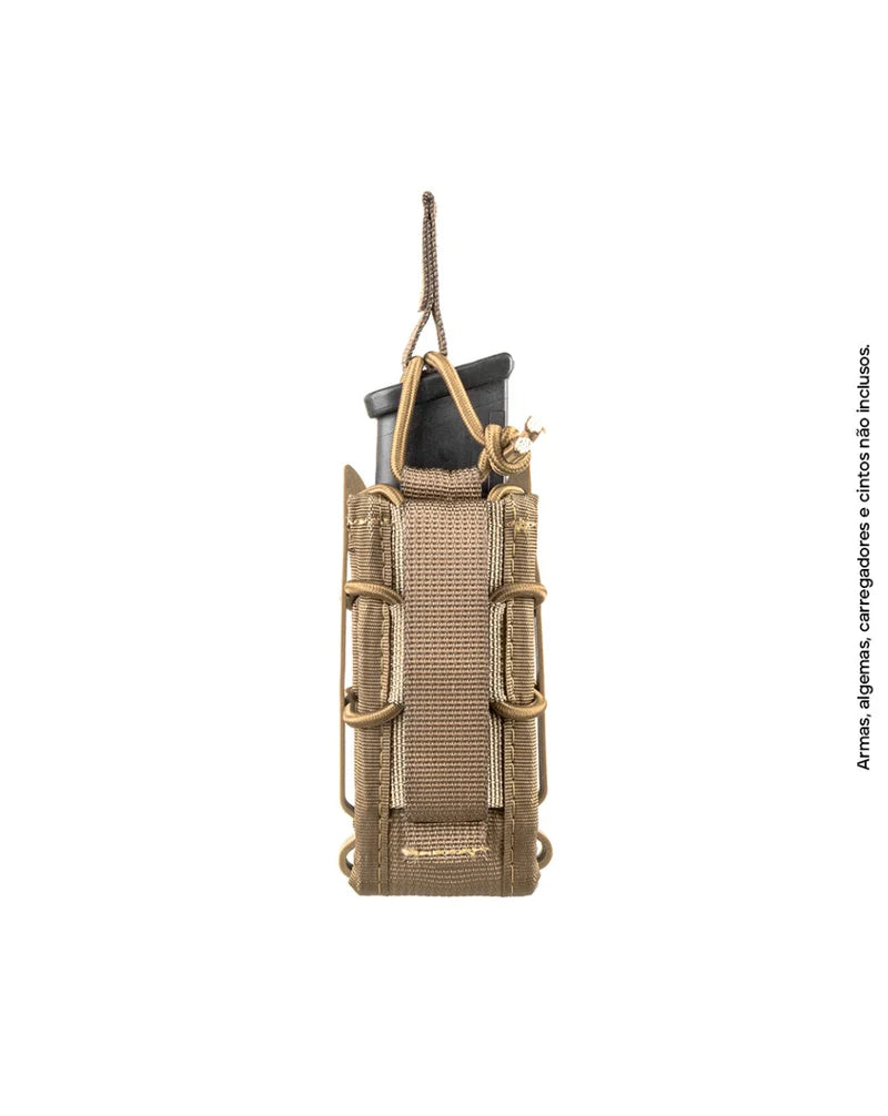 Na hora da missão, é importante ter seu carregador extra sempre a mão. E o Porta-Carregador Reload Pistol - Coyote é o seu parceiro ideal. Feito em fita de alta tenacidade, ele resiste às situações mais extremas. Os insertos laterais flexíveis em polímero mantém a estrutura e a integridade do produto, enquanto o ajuste de retenção superior removível e o elástico regulador de pressão mantém seu carregador sempre seguro. O Reload Pistol pode ser montado em canguru, permitindo que você carregue mais de um.