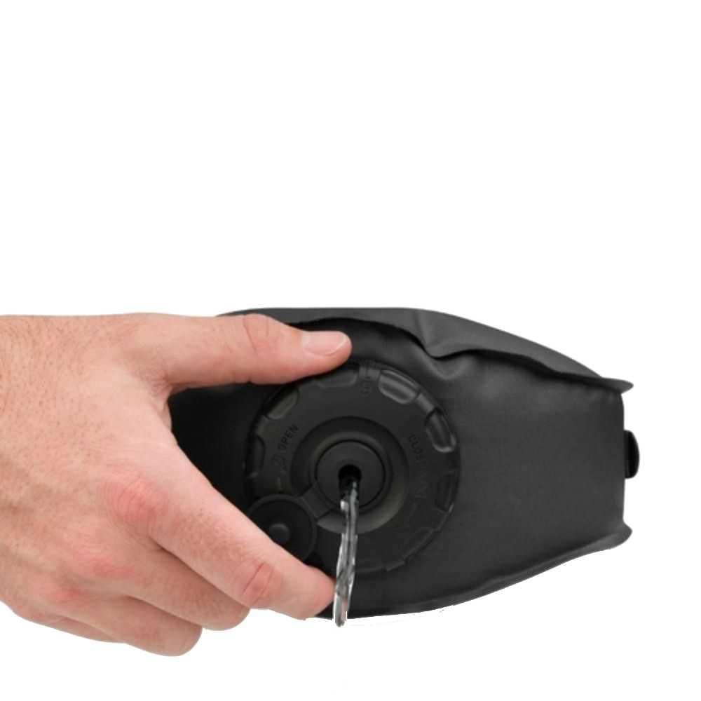 Seu transporte, enquanto cheio, ocorre de forma prática e segura, pois conta com um sistema de correias ajustáveis que também podem ser utilizados para amarração e suspensão. Já enquanto estiver vazio, ele cabe facilmente em um cantinho da sua mochila e agrega pouco peso à sua bagagem.