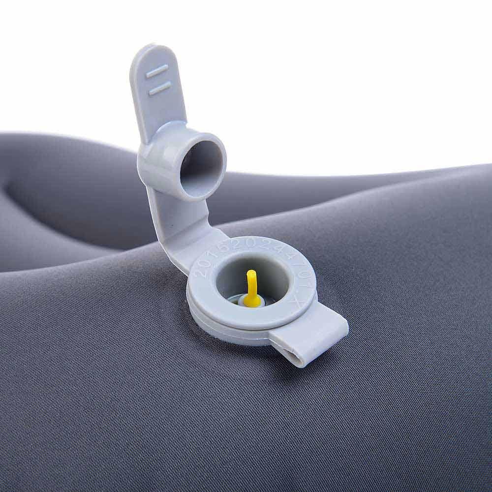 Fabricado em poliéster 20D laminado, ele é extremamente resistente e silencioso (não faz aquele barulho de plástico ao se mexer). O seu fechamento conta com uma mini válvula multifuncional de perfil baixo, que permite inflar o travesseiro com apenas 2 ou 3 sopros e esvaziá-lo instantaneamente através da abertura total da válvula.